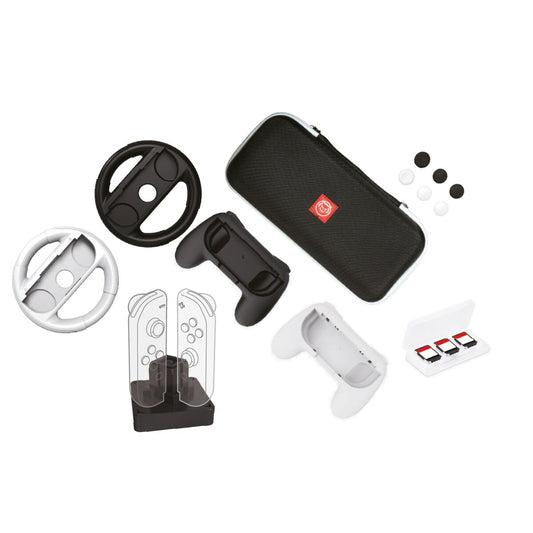 Qware accessoir set – 2 Lenkräder, 2 Controller, Ladegerät, Daumengriffe & Spielhüllen kompatibel mit Nintendo Switch