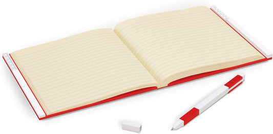 IQ LEGO Stationary Locking Notebook - Schreibwaren Notizbuch mit Gelstift - Notizbuch mit 352 quadratischen Papierseiten und Gelschreiber - Rot