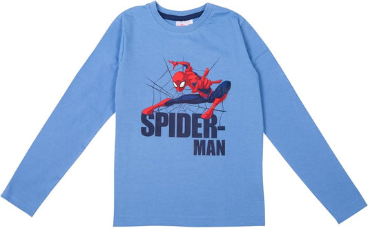 Marvel Spider-Man Schlafanzug für Jungen Kinder Pyjama Set Langarm Oberteil mit Hose Blau/Schwarz