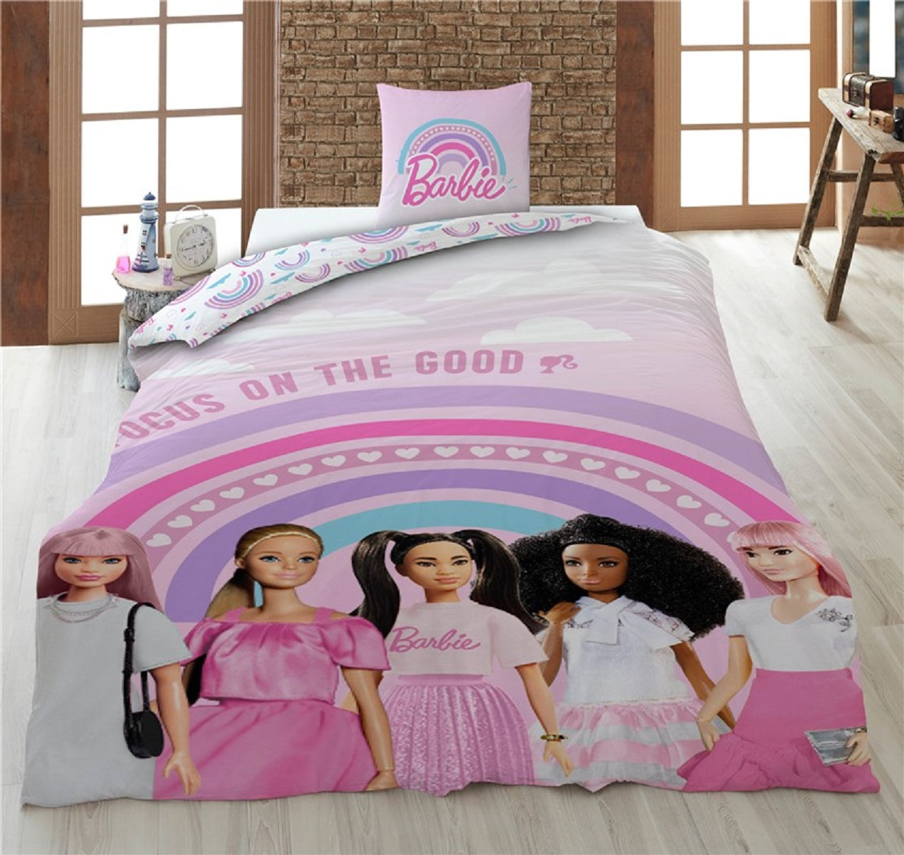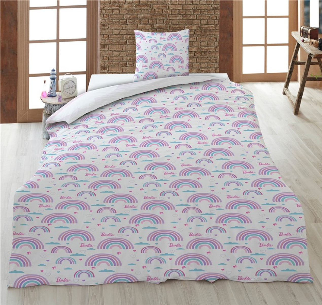 Barbie Bettwäsche-Set – 1x Deckenbezug 140x200 & 1x Kissenbezug 65x65 cm für Kinder