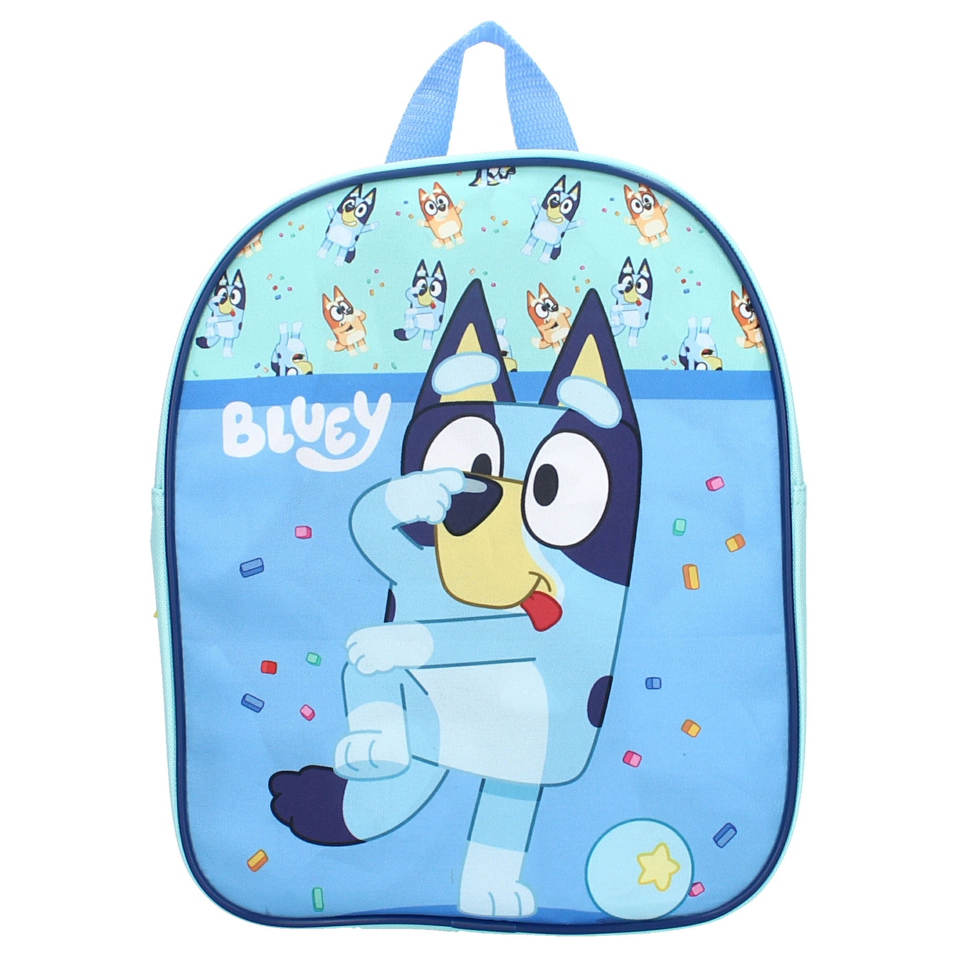 Der Bluey Backpack - Beste Freunde machen Spaß ist der perfekte Begleiter für kleine Abenteuer und große Entdeckungen. Mit einem niedlichen Design, inspiriert von Bluey und ihren Freunden, bietet dieser Rucksack ausreichend Platz für alle wichtigen Dinge. Leicht und bequem zu tragen, ist er ideal für Schule, Ausflüge oder Freizeitaktivitäten – ein Muss für jeden kleinen Bluey-Fan!