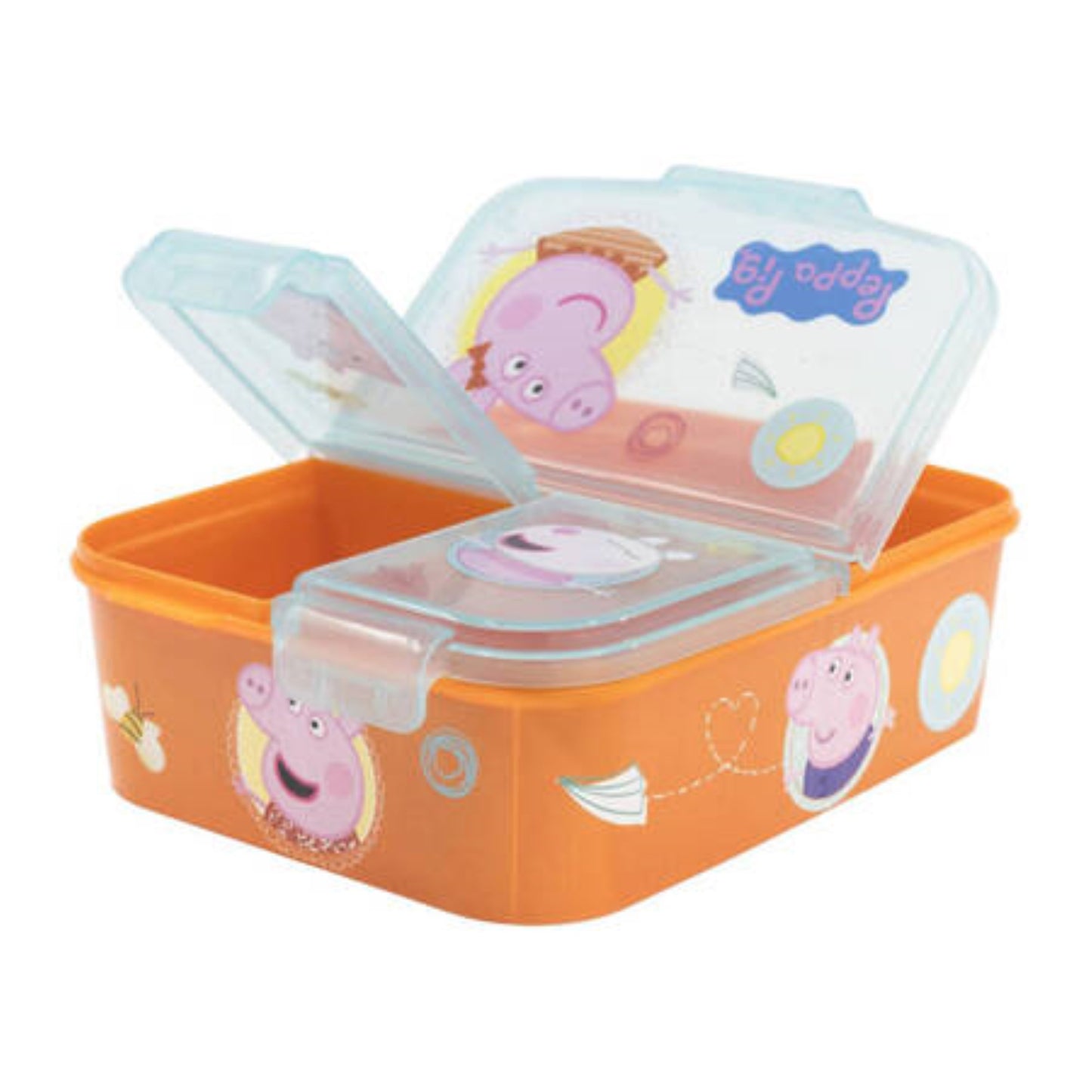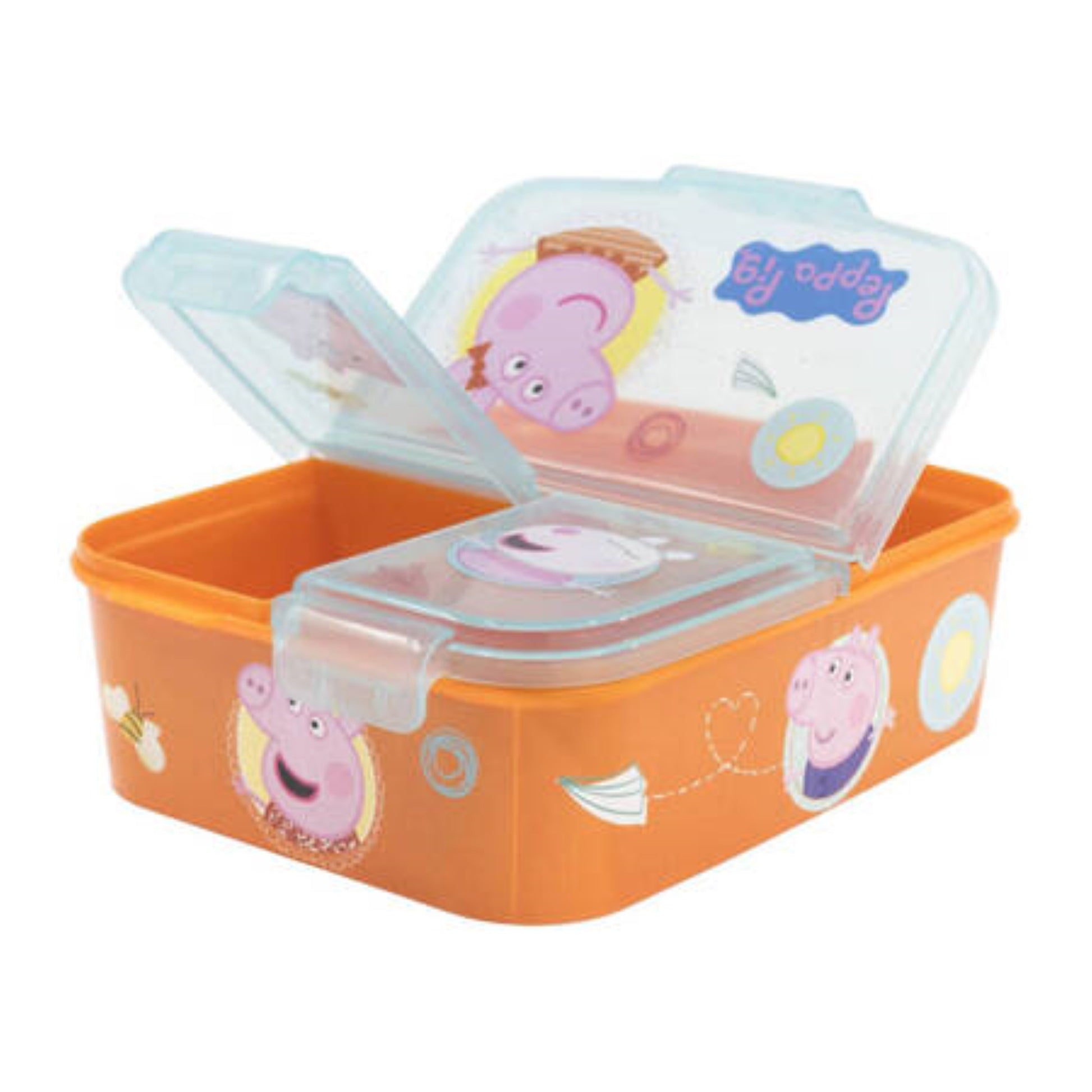 Brotdose für Kinder mit 3 Fächer Peppa Pig Lunchbox in Orange Frühstücksbox