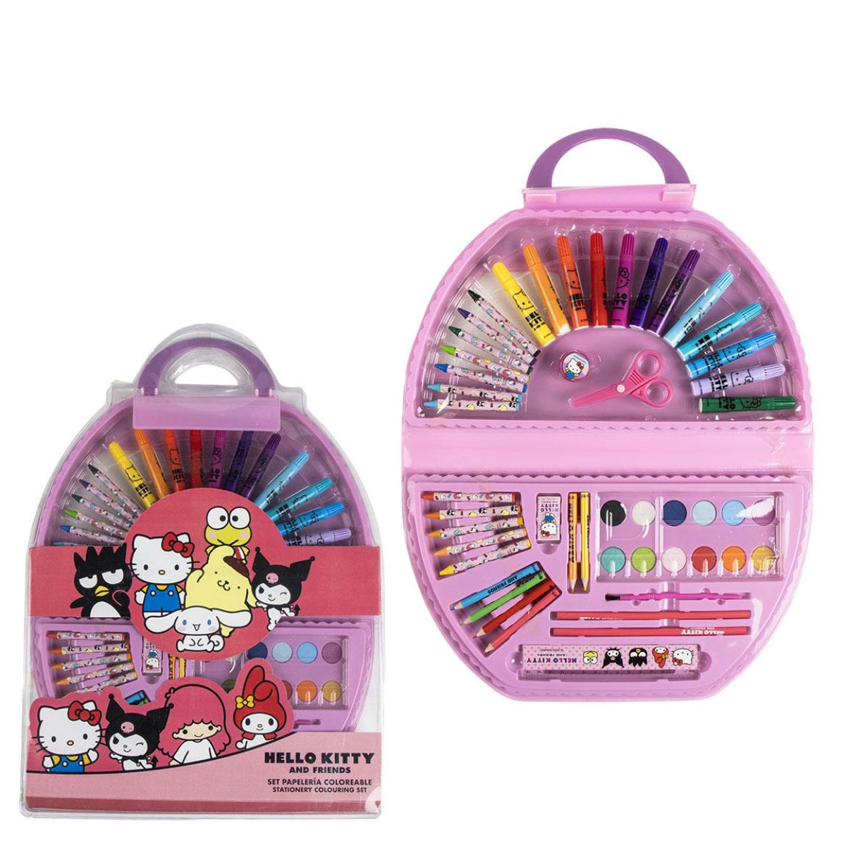 Das 50-teilige Hello Kitty Schreibwaren-Set ist ein Traum für kleine Künstlerinnen und Fans der beliebten Figur. Es enthält eine Vielzahl an Schreib- und Malutensilien, die zum Ausmalen und kreativen Gestalten einladen. Ob für die Schule, Zuhause oder unterwegs – dieses Set bietet alles, was Kinder für stundenlangen Malspaß benötigen. Mit liebevoll gestalteten Hello Kitty-Motiven fördert es die Kreativität und Feinmotorik der Kinder. Ein ideales Geschenk für Mädchen ab 3 Jahren, die die magische Welt von Hello Kitty lieben.