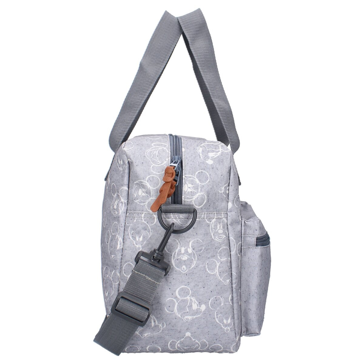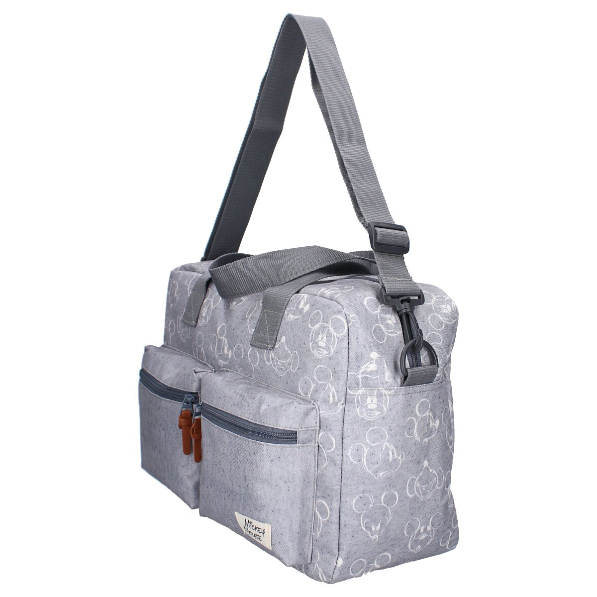 Entdecken Sie die perfekte Kombination aus Stil und Funktionalität mit unserer Windeltasche, ein Muss für alle Eltern! Mit ihrer grauen Farbe und dem niedlichen Aufdruck von kleinen Mickey Mouse-Puppen strahlt diese Tasche zeitlosen Charme aus. Mit einem großen Hauptfach und zwei kleinen Taschen auf der Vorderseite bietet diese Wickeltasche genug Platz, um alle wichtigen Dinge für Ihr Baby zu verstauen. Egal, ob Sie Windeln, Fläschchen oder zusätzliche Kleidung transportieren möchten, alles passt problemlos in diese Tasche. Die Tasche verfügt über einen kleinen Griff, der sich ideal für schnelle Bewegungen eignet, und wird mit einem langen Griff geliefert, der ein freihändiges Tragen ermöglicht. Außerdem sorgt die mitgelieferte Wickelunterlage dafür, dass Sie Ihr Baby überall sauber und bequem wickeln können. Mit dieser Wickeltasche müssen Sie keine Kompromisse zwischen Stil und Zweckmäßigkeit eingehen.