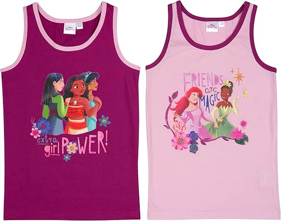 Disney Princess Unterhemd für Mädchen Hemdchen Tank Top Unterwäsche Lila/Rosa (2er Pack)