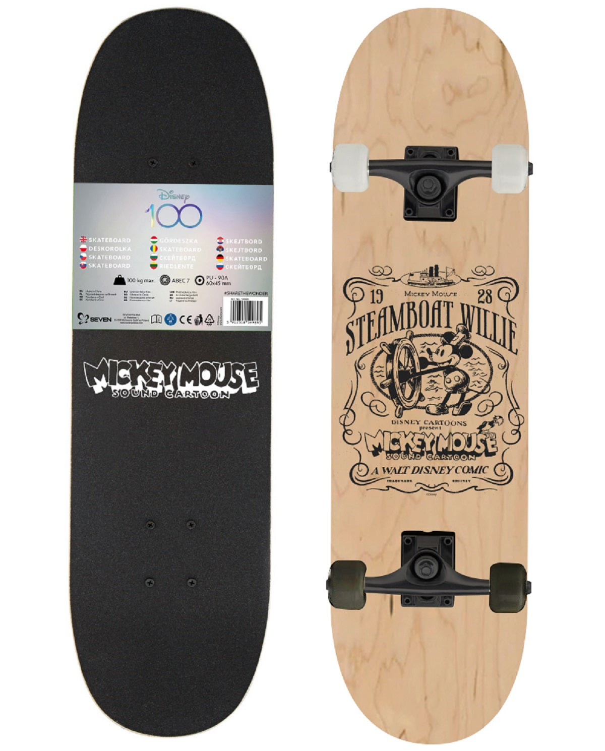 Ein Holz-Skateboard mit trendigen Disney-Mustern. Es ist ideal für die Nutzung auf Gehwegen, Plätzen und in urbanen Gassen geeignet. Das Board besteht aus langlebigem Holz und hat eine rutschfeste Oberfläche, die Traktion bietet und die Sicherheit erhöht.