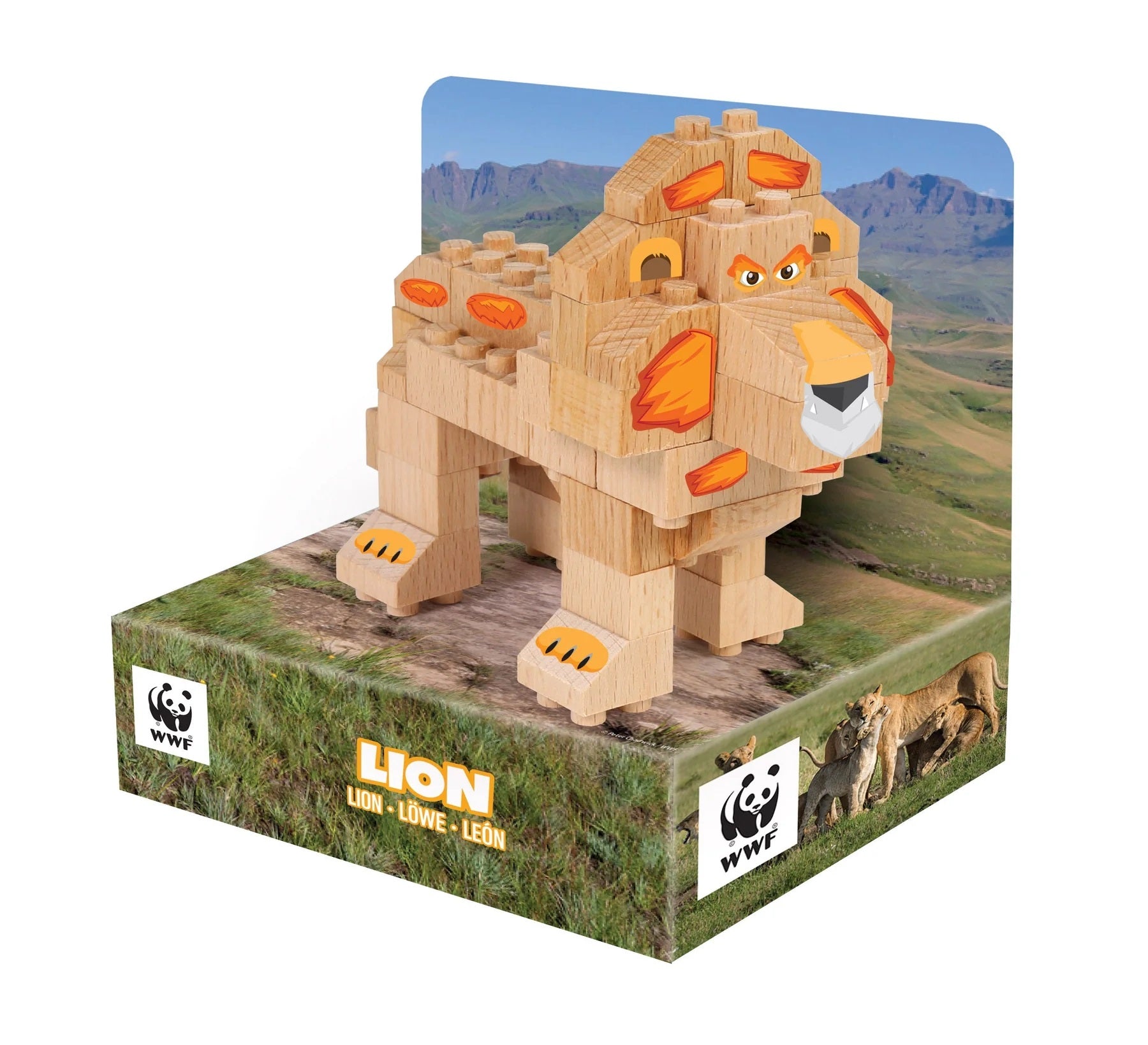 FabBrix WWF Wooden Bricks Löwe Holzbausteine, Klemmbausteine aus zertifiziertem Buchenholz, 100% kompatibel mit konventionellen Bausteinen FB-WWF009