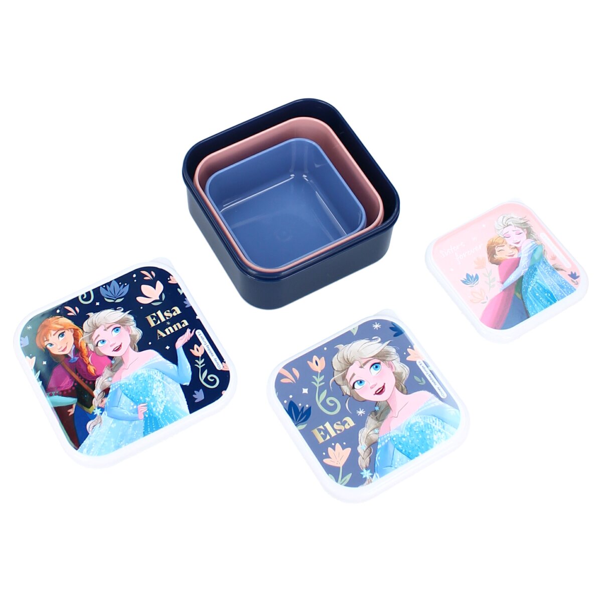 Entdecken Sie diese lustige blaue Frozen II Snackbox aus der Fresh Bites Kollektion. Die drei Schalen sind ideal für die Schule oder einen Ausflug. Jedes Tablett zeigt ein süßes Bild von Anna und Elsa. Die Behälter haben einen stabilen Verschluss und lassen sich leicht zusammenstecken, so dass die Produkte einfach aufbewahrt werden können. Dies ist die perfekte 3-in-1-Snackbox für echte Frozen II-Fans!