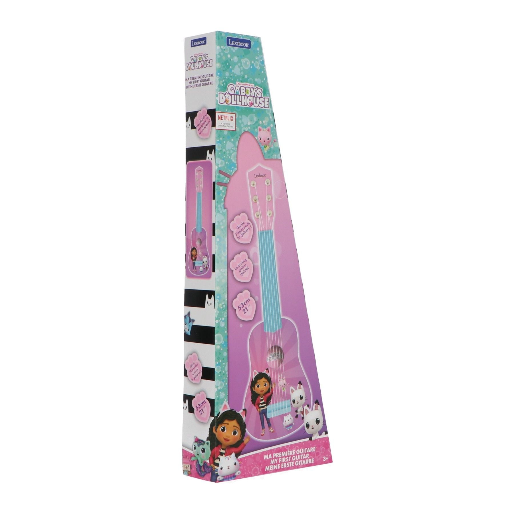 Tauche ein in die magische Welt von Gabby's Dollhouse mit "Meine erste Gitarre - 21""! Diese zauberhafte Gitarre wurde speziell für kleine Musikliebhaber entwickelt und bringt den Zauber von Gabby's Abenteuer direkt in dein Zuhause. Mit ihrem kindgerechten Design, den leuchtenden Farben und den süßen Motiven ist sie perfekt, um erste musikalische Schritte zu wagen. Ob einfaches Klimpern oder erste Akkorde – diese Gitarre fördert Kreativität, Motorik und jede Menge Spaß. Ein idealer Einstieg in die Welt der Musik!
