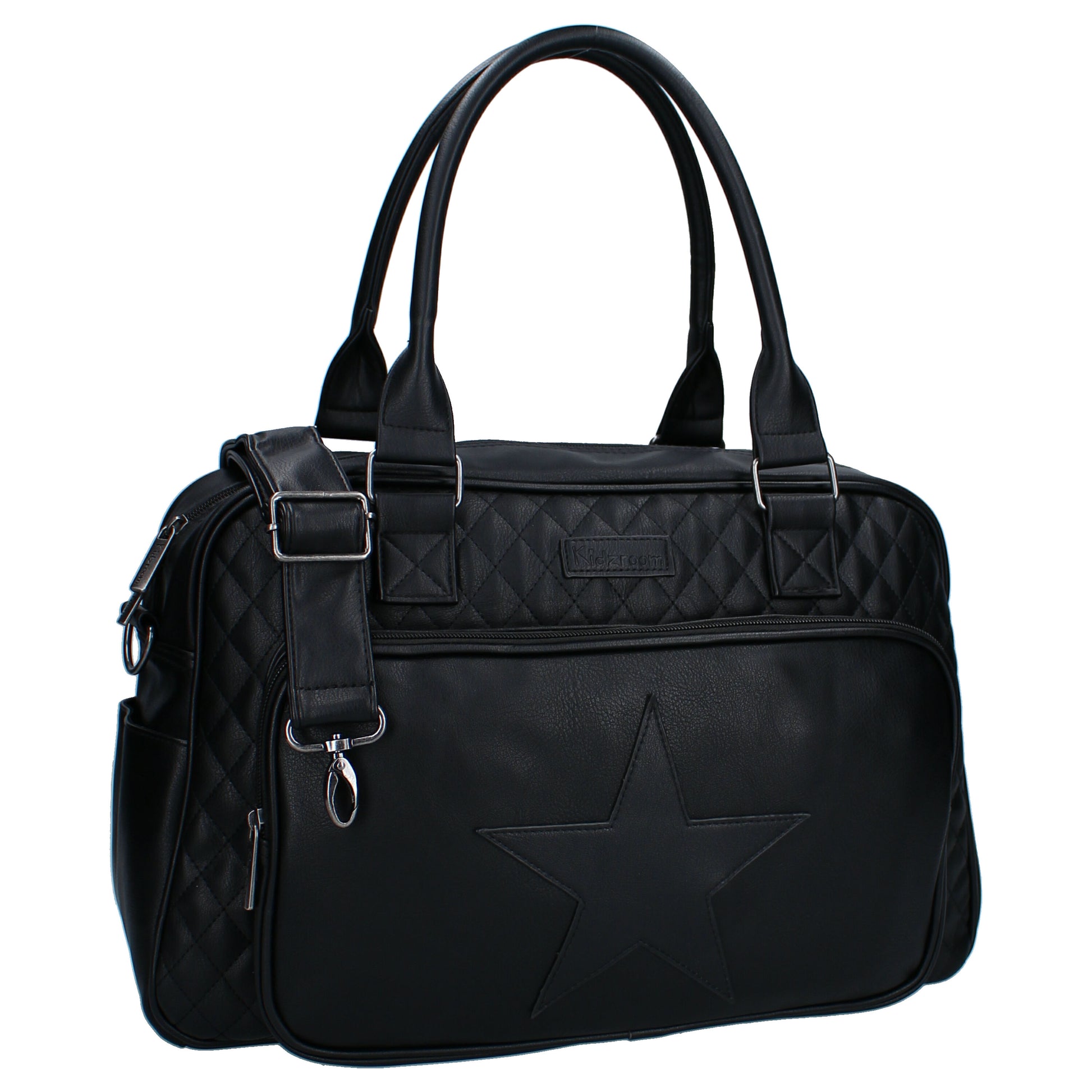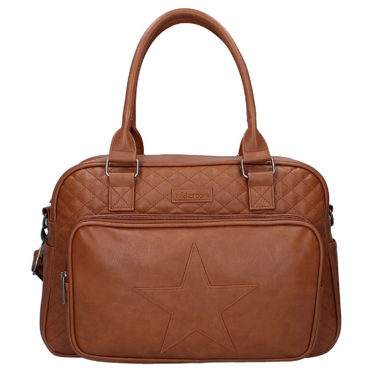 Möchten Sie eine Tasche, in der Sie viele Dinge für Ihr Baby und sich selbst verstauen können und die gleichzeitig stilvoll aussieht? Dann ist diese Kidzroom Wickeltasche genau das Richtige für Sie! Diese cognacfarbene Kidzroom Wickeltasche bietet Platz für alle Windeln, hydrophilen Tücher, zusätzliche Kleidung, Flaschen, Snacks und Schnuller, die Sie für Ihr Baby unterwegs benötigen. Die Tasche hat eine geräumige Vordertasche mit einem großen Stern als Detail für die Dinge, die man schnell zur Hand haben möchte. Außerdem ist das große Hauptfach mit einem Doppelreißverschluss ausgestattet, der den Zugang erleichtert. In dem großen Fach befinden sich auch mehrere Taschen mit elastischen Bändern, in die man leicht einen Becher stellen kann. Die Windeltasche hat eine passende Wickelunterlage, damit Sie Ihr Baby jederzeit und überall wickeln können. Die Windeltasche kann an den Griffen oben oder mit dem verstellbaren und abnehmbaren Schultergurt über der Schulter getragen werden. Die Windeltasche hat außerdem Schlaufen zum einfachen Aufhängen am Kinderwagen. Die Wickelauflage ist 64 x 32 cm groß und hat eine leicht herausnehmbare Innenseite.