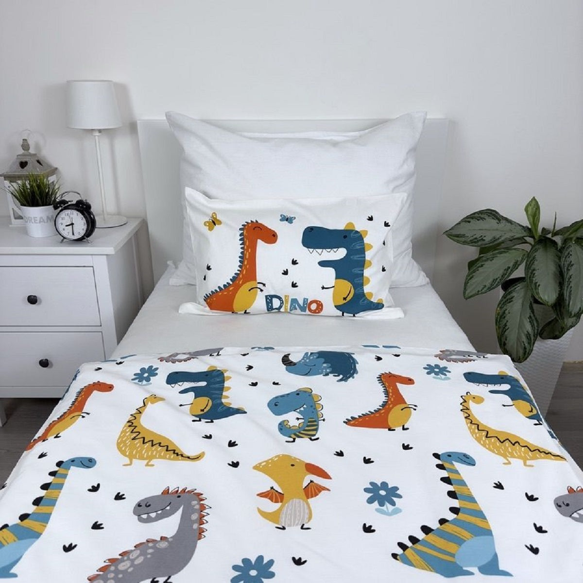 Kinderbettwäsche mit Dino-Design – Bettbezug 100x135 cm & Kissenbezug 40x60 cm