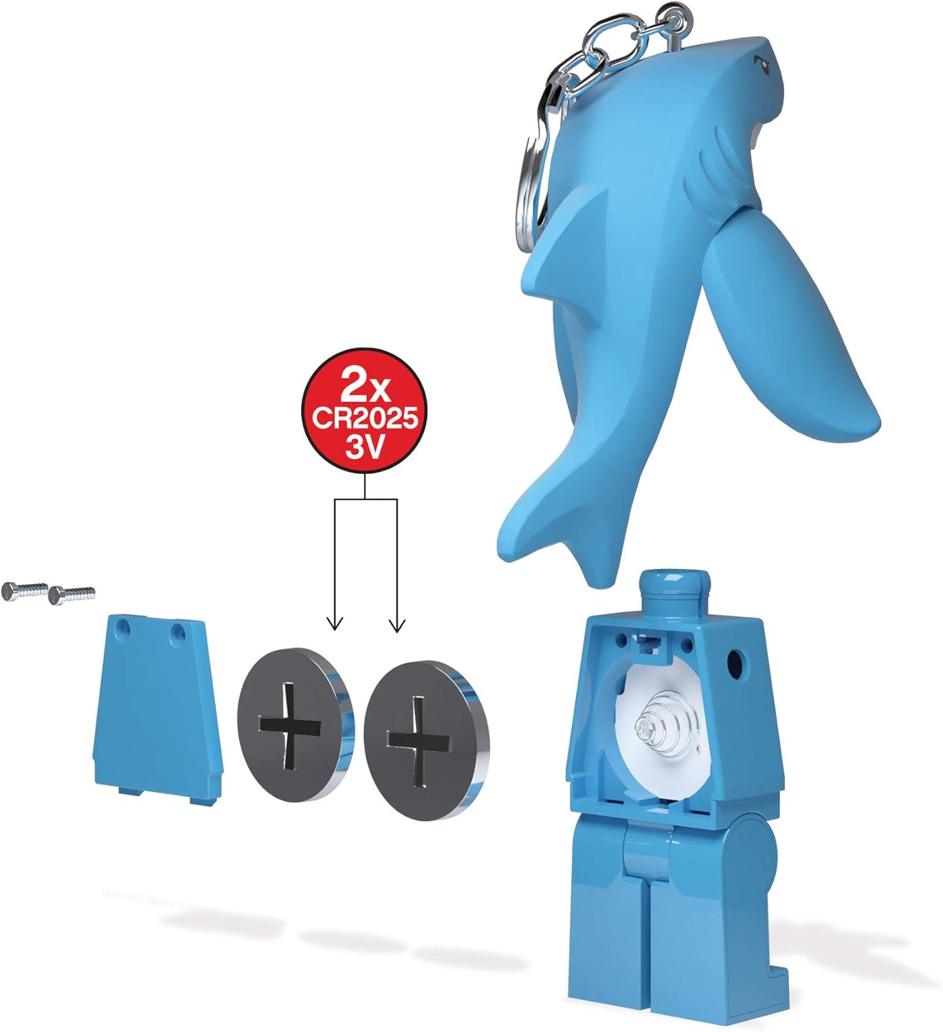Lego Iconic Shark Suit Guy Schlüsselanhänger mit LED-Taschenlampe Spielzeuggeschenke für Kinder
