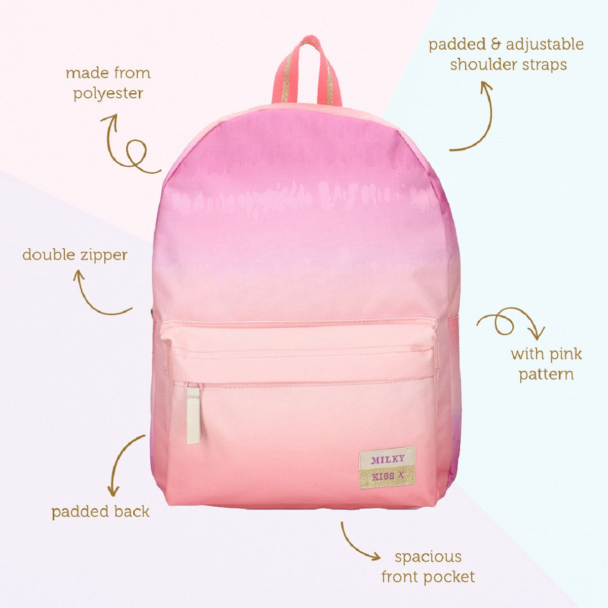 Milky Kiss Bold Style Rucksack – Auffälliger Rucksack in Rosa Degrade Schultasche