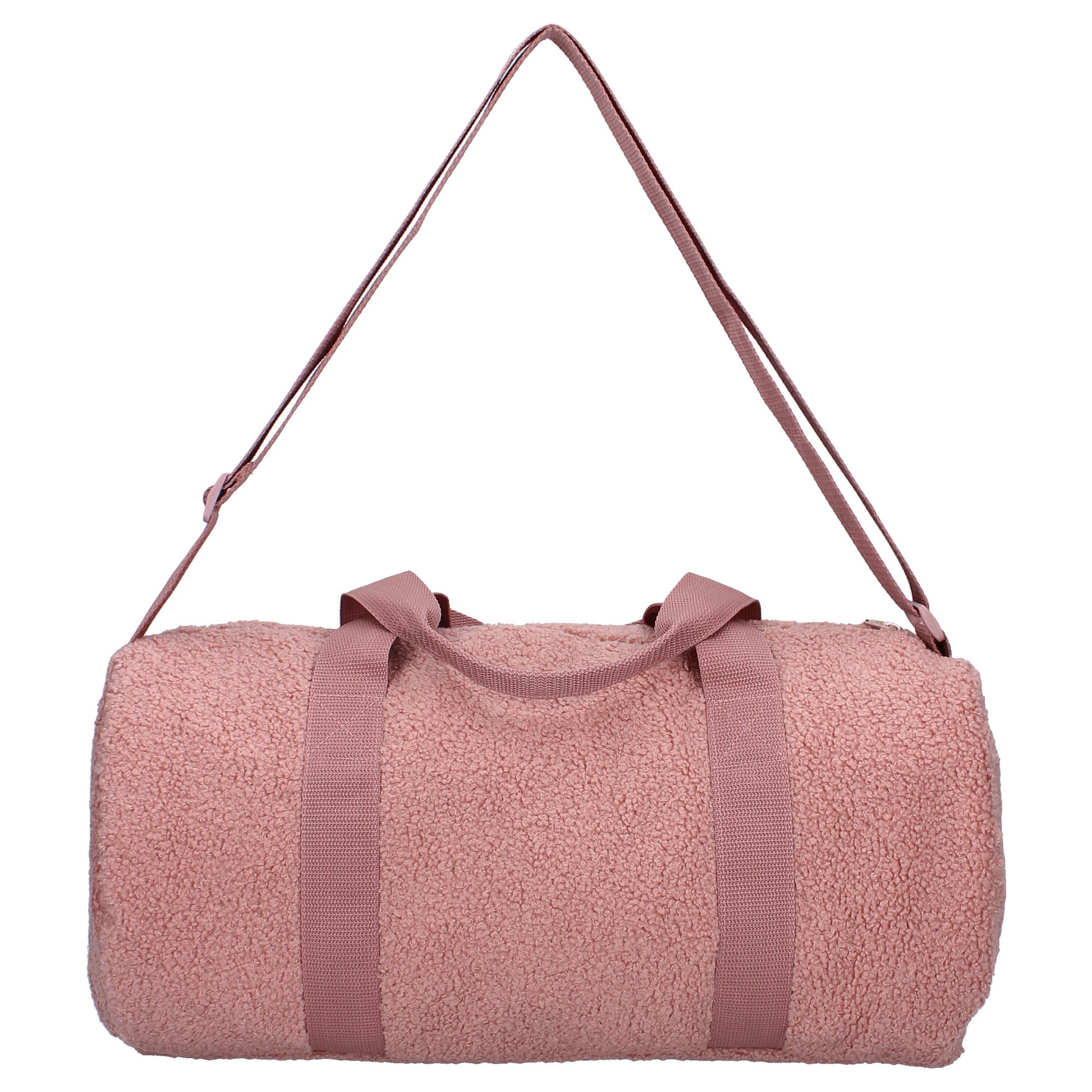 Milky Kiss Fanciful Sporttasche Luxus-Teddy-Stoff, Reißverschluss & pinkfarbener Ball