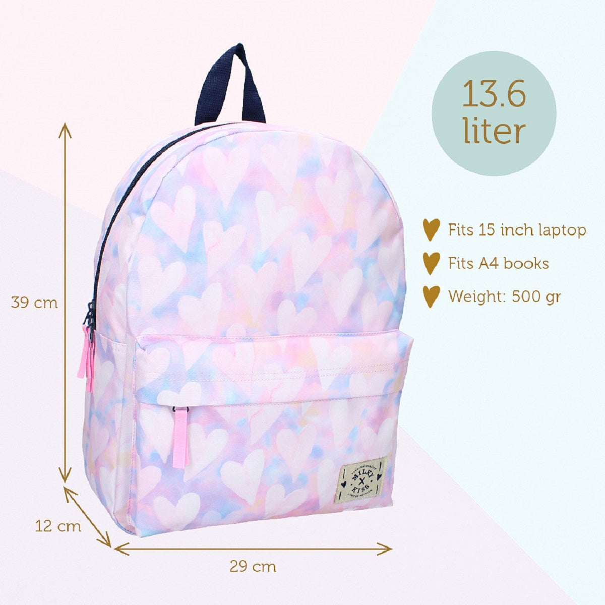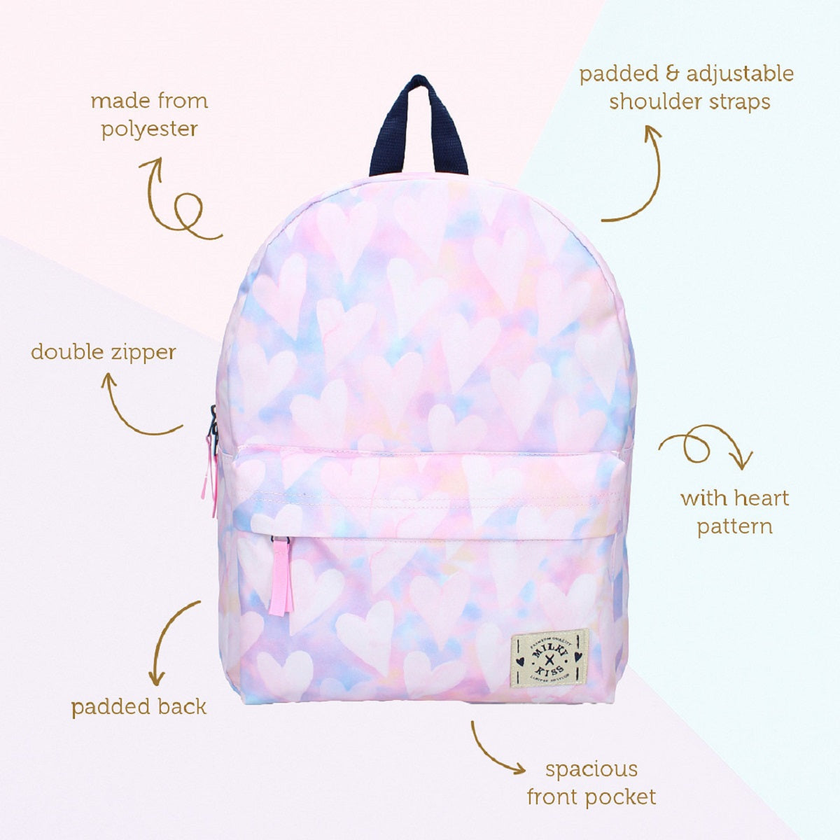 Milky Kiss Clever Girls Rucksack – Trendiger Rucksack mit Herz-Print für kleine Fashionistas