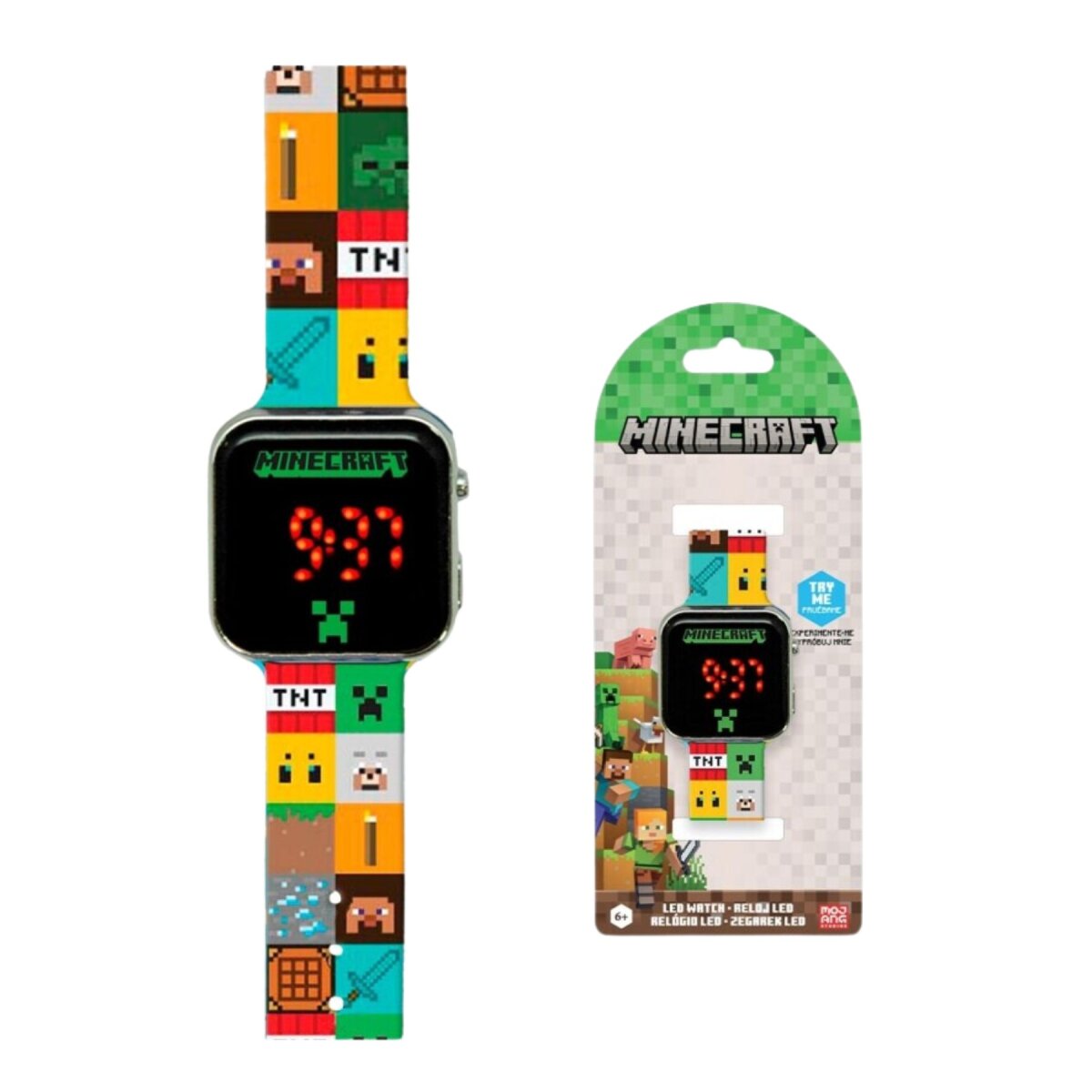 Die Minecraft Digitaluhr ist das ultimative Accessoire für Fans des weltberühmten Spiels! Mit ihrem coolen Design, inspiriert von den pixeligen Welten und Charakteren von Minecraft, bringt sie Abenteuer direkt ans Handgelenk. Die Digitalanzeige bietet eine klare Zeitdarstellung, während die kinderfreundliche Bedienung perfekt für kleine Baukünstler ist. Robust und stilvoll, ist diese Uhr ideal für Schule, Freizeit oder spannende Minecraft-Missionen!