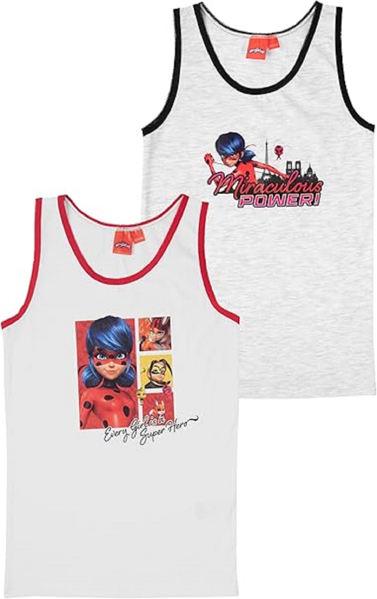 Miraculous Ladybug Unterhemd für Mädchen - Kinder Tank Top Unterwäsche Weiß/Grau (2er Pack)