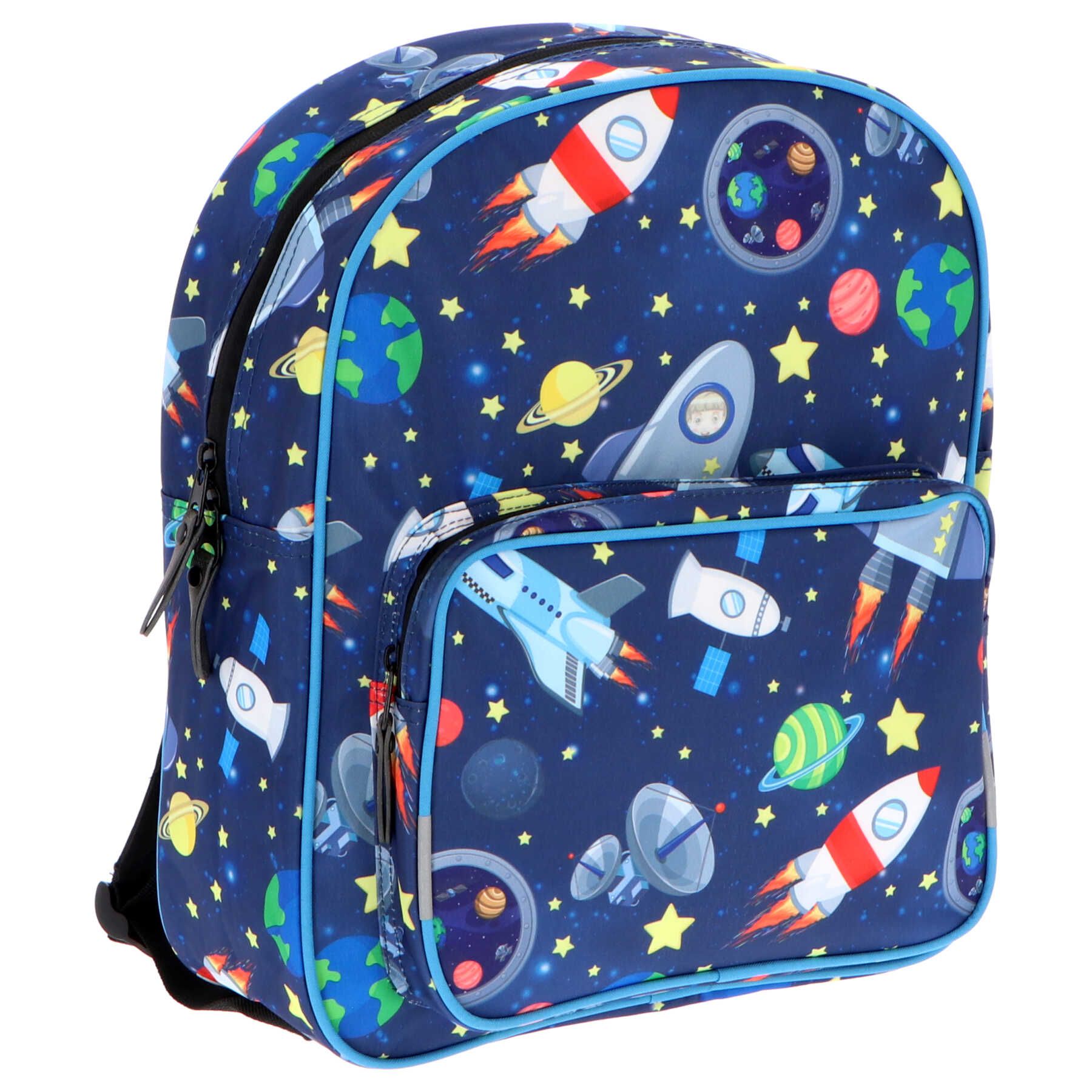 Der Space Rucksack ist der ideale Begleiter für kleine Astronauten! Mit seinem coolen Weltraumdesign begeistert er sowohl im Alltag als auch bei Ausflügen und Abenteuern. Die vielen praktischen Fächer bieten ausreichend Platz für alles, was du brauchst – von Schulbüchern bis zu persönlichen Schätzen. Dank der verstellbaren, gepolsterten Träger ist der Rucksack besonders bequem zu tragen. Ob für die Schule oder den nächsten Ausflug ins All, dieser Rucksack ist immer ein treuer Begleiter!